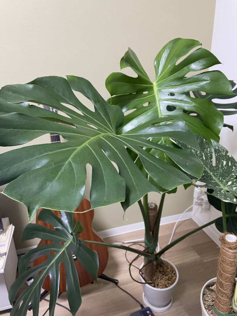 なかなか葉っぱが割れずにネットで「モンステラ 葉っぱが割れない」で検索しまくっていました(笑)。初めて葉っぱが割れた時の感動今でも忘れません。